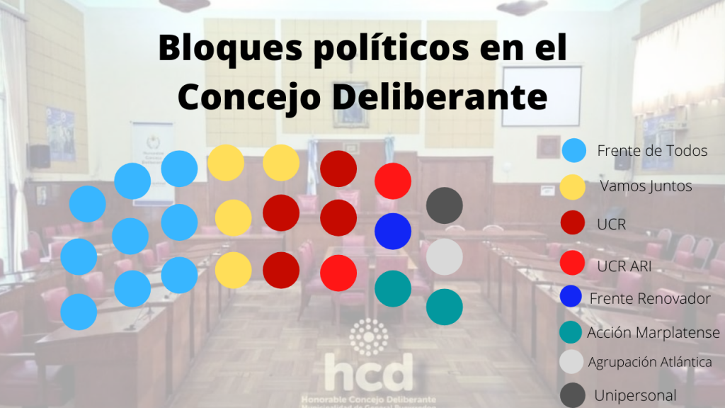 Actualmente, el bloque con mayor cantidad de concejales es el Frente de Todos, presidido por Marcos Gutiérrez e integrado también por Vito Amalfitano, María Sol de la Torre, Roberto “Tata” Gandolfi, Verónica Lagos, Roberto “Chucho” Páez, Daniel Rodríguez, Marina Santoro y María Sivori.