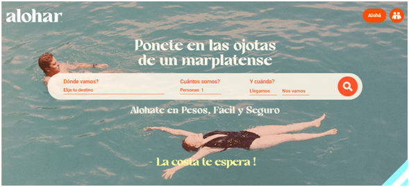 Con la necesidad de fortalecer el turismo interno, los marplatenses Fernando Unzué, Juan Ignacio Collar Lopez y Emiliano Suazo decidieron lanzar Alohar: una plataforma digital de alquiler de alojamiento temporal que busca impulsar el turismo local en Argentina. Alohar (alohar.me) se caracteriza por ser muy fácil de usar, seguro y en pesos.