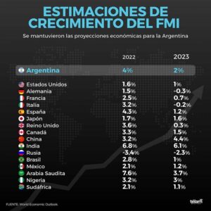 El organismo financiero confirmó, durante el World Economic Outlook, las proyecciones del 4% de crecimiento este año y un 2% el próximo, por debajo de China (4,4%) India (6,1%) y Araba Saudita (3,7%), en un contexto mundial de alta inflación y desaceleración económica.