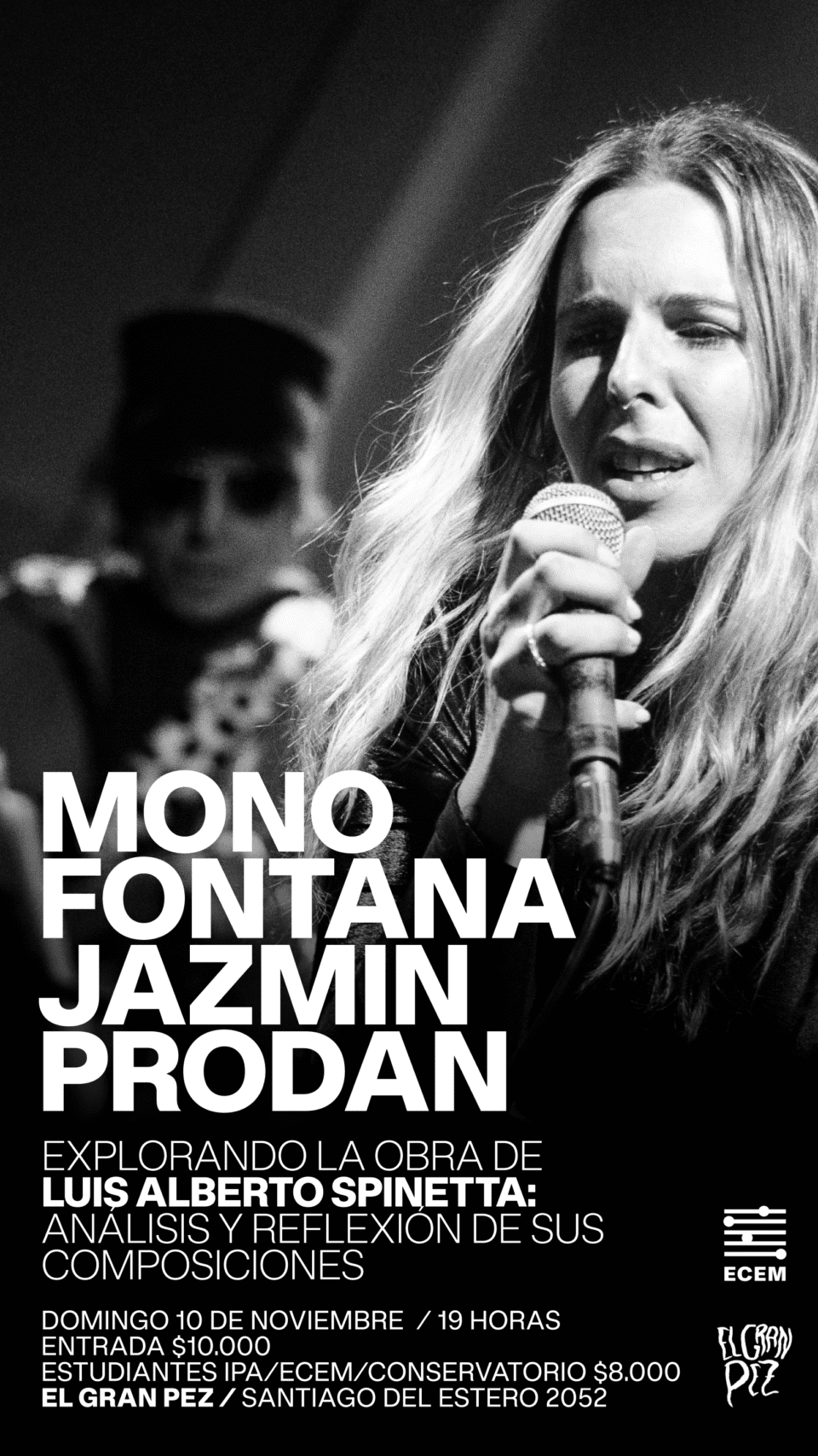 Jazmín Prodan, cantante y compositora de formación internacional, estudió en la Universidad de North Texas y lanzó su álbum Siete Jardines en Nueva York, un proyecto que fusiona improvisación y poesía. Mono Fontana, legendario multiinstrumentista, fue colaborador de Spinetta en varias de sus bandas icónicas y es considerado una «usina creativa» en los teclados.