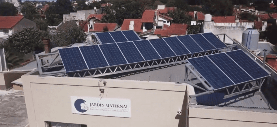 Posteriormente, en el año 2017 se crea la Comisión de Ahorro Energético del Programa Universidad y Medio Ambiente (PUMA) y nace una nueva iniciativa: instalar un sistema de conversión e inyección de energía solar fotovoltaica en un ambiente que no fuera un laboratorio de investigación. Para ello se eligió el Jardín Maternal de la UNMDP situado en Rodríguez Peña 3946. Esto constituyó un nuevo hito, pues permitió generar el primer convenio entre la universidad y la empresa EDEA S.A. El Jardín Maternal sería el primero en contar con un nuevo sistema eléctrico abastecido por energía solar, una experiencia sin precedentes en la ciudad. El sistema fotovoltaico instalado cuenta con 16 paneles solares de 250W y un convertidor de 5kW que inyecta la energía colectada en la instalación eléctrica de la dependencia y la energía excedente se inyecta en la red de distribución de la ciudad cumpliendo las normativas vigentes.