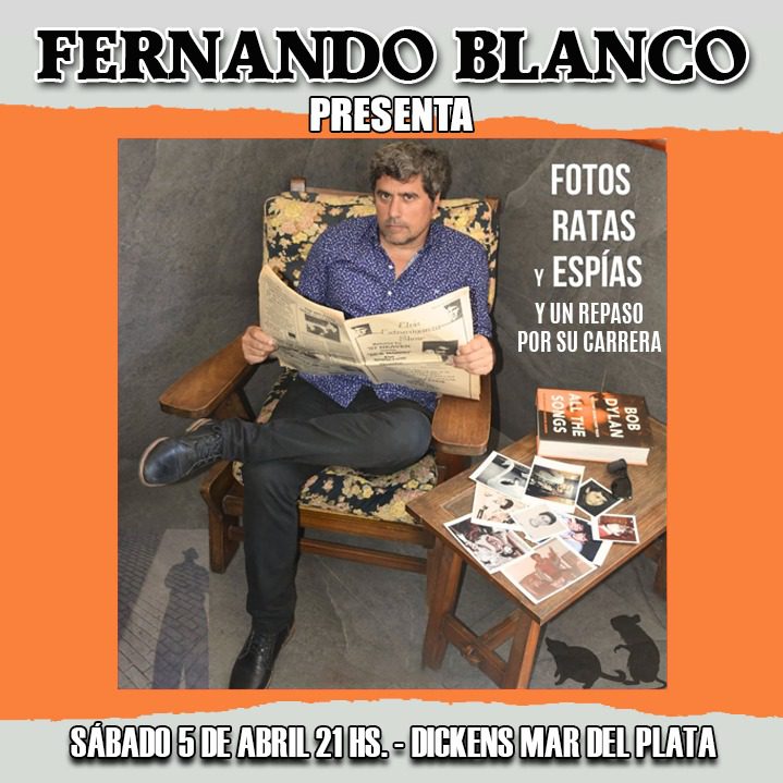 El próximo sábado 5 de abril a las 21 hs, el reconocido músico marplatense Fernando Blanco presentará su nuevo disco, «Fotos, Ratas y Espías», en Dickens, acompañado por su banda y con la participación de músicos invitados sorpresa.