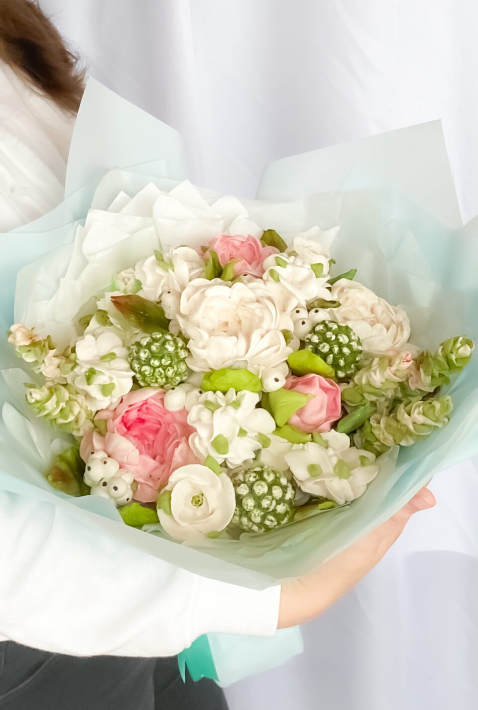 Kseniia Botalov es rusa y vive en Argentina desde hace tres años. Hace seis meses se mudó a Mar del Plata, y fue entonces cuando, junto a su marido, empezó “Bloom by Xenia Botalov”, un emprendimiento de repostería creativa. Utilizando zephyr, un dulce típico de Rusia semejante al malvavisco, Kseniia elabora flores, y con ellas, ramos y cajas de regalo.