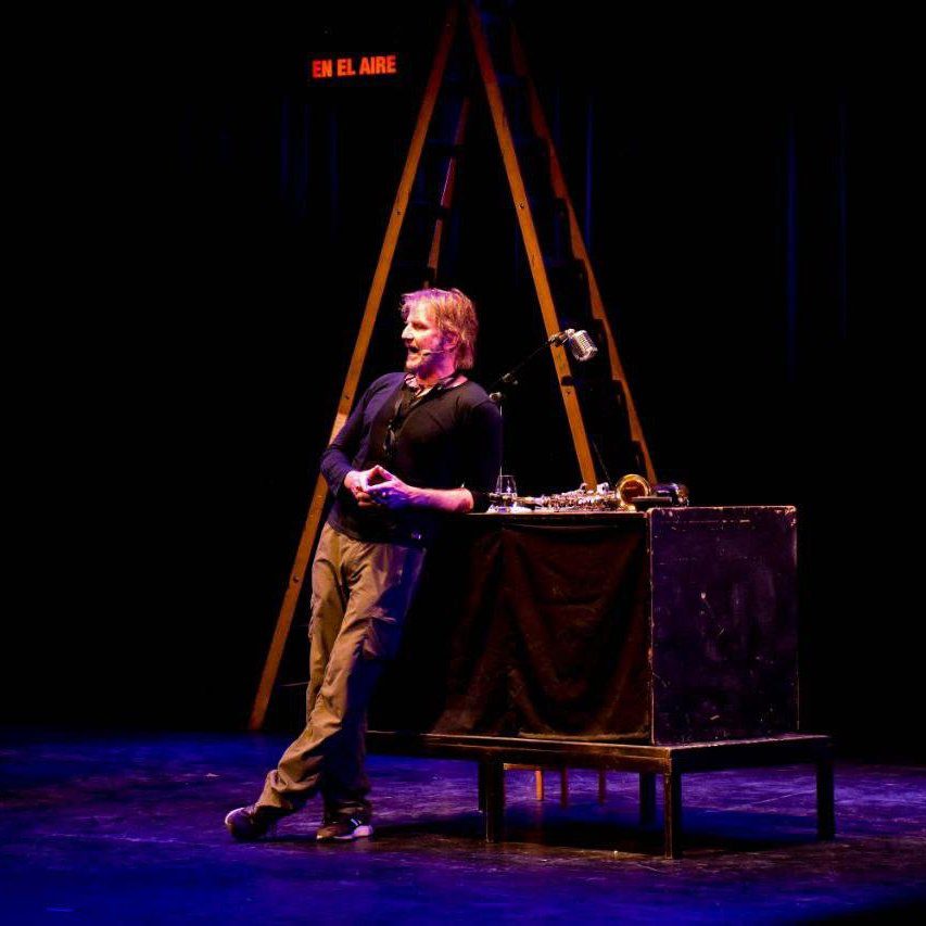 “En el aire” propone un viaje íntimo y nostálgico en el que se mezclan la memoria, el amor, el humor, los buenos deseos y la esperanza. En escena, Arana despliega todo su talento: actúa, canta, toca el saxo y construye un clima cargado de humanidad, cercanía y poesía. Cada función se vuelve única, como una emisión radial que se vive una sola vez y queda suspendida en el aire.