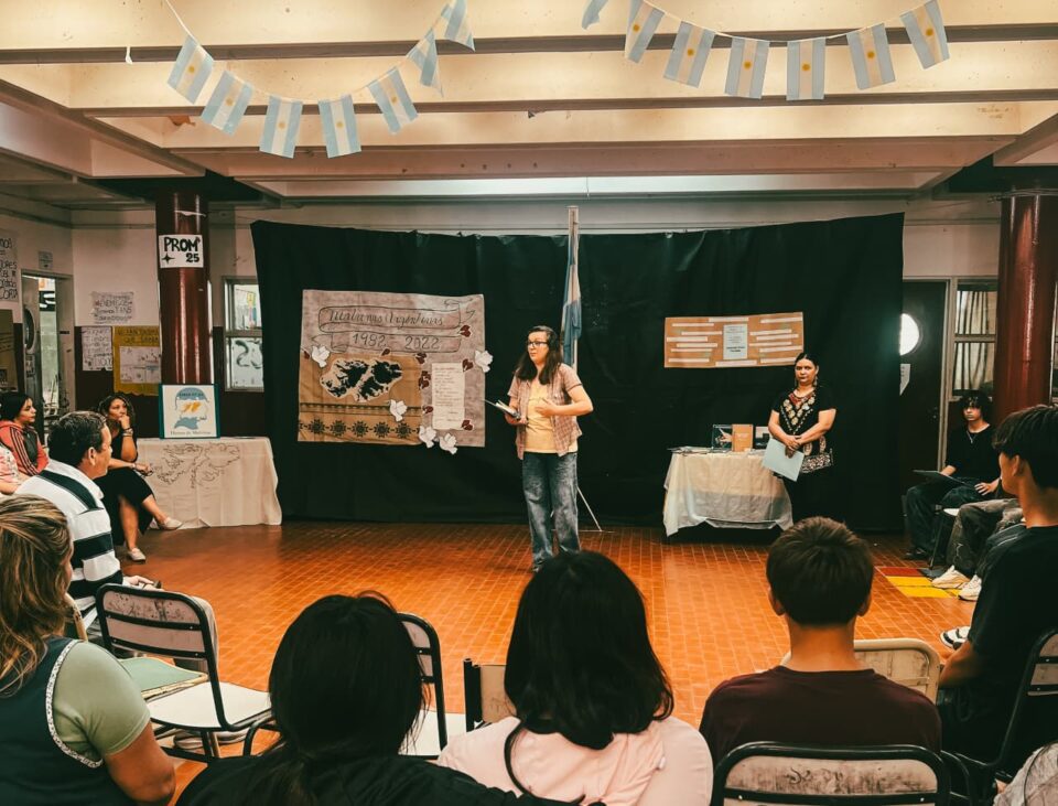 La Escuela Secundaria Municipal N°214 “Héroes de Malvinas” organizó un acto con la presencia del exsoldado combatiente en Malvinas, Leonardo Corvalán, quien les hizo entrega de su libro “Memoria de guerra”.