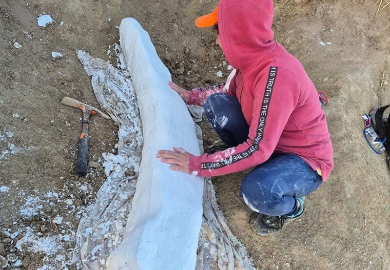 Personal del Museo Municipal de Ciencias Naturales de Miramar realizó la extracción del fósil junto a profesionales del Museo Scaglia de Mar del Plata y voluntarios.