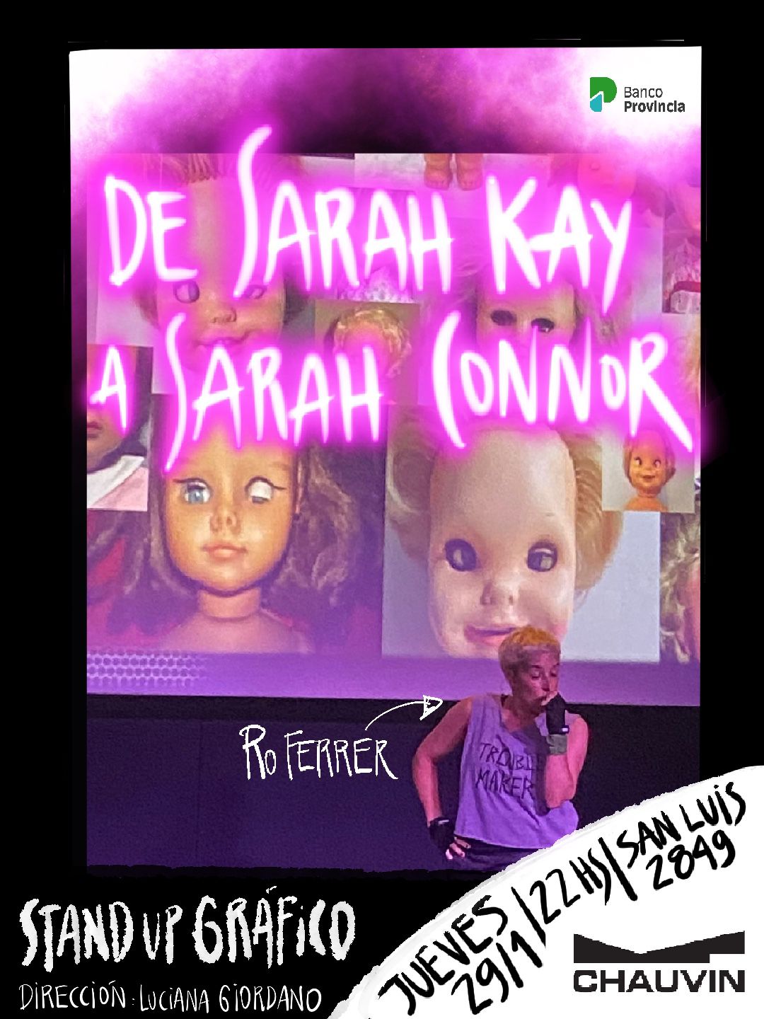 Ro Ferrer se presenta en Chauvin este jueves 29 de enero con De Sara Kay a Sarah Connor, un stand up gráfico que cruza humor, feminismo y ESI para pensar los mandatos culturales desde la risa.