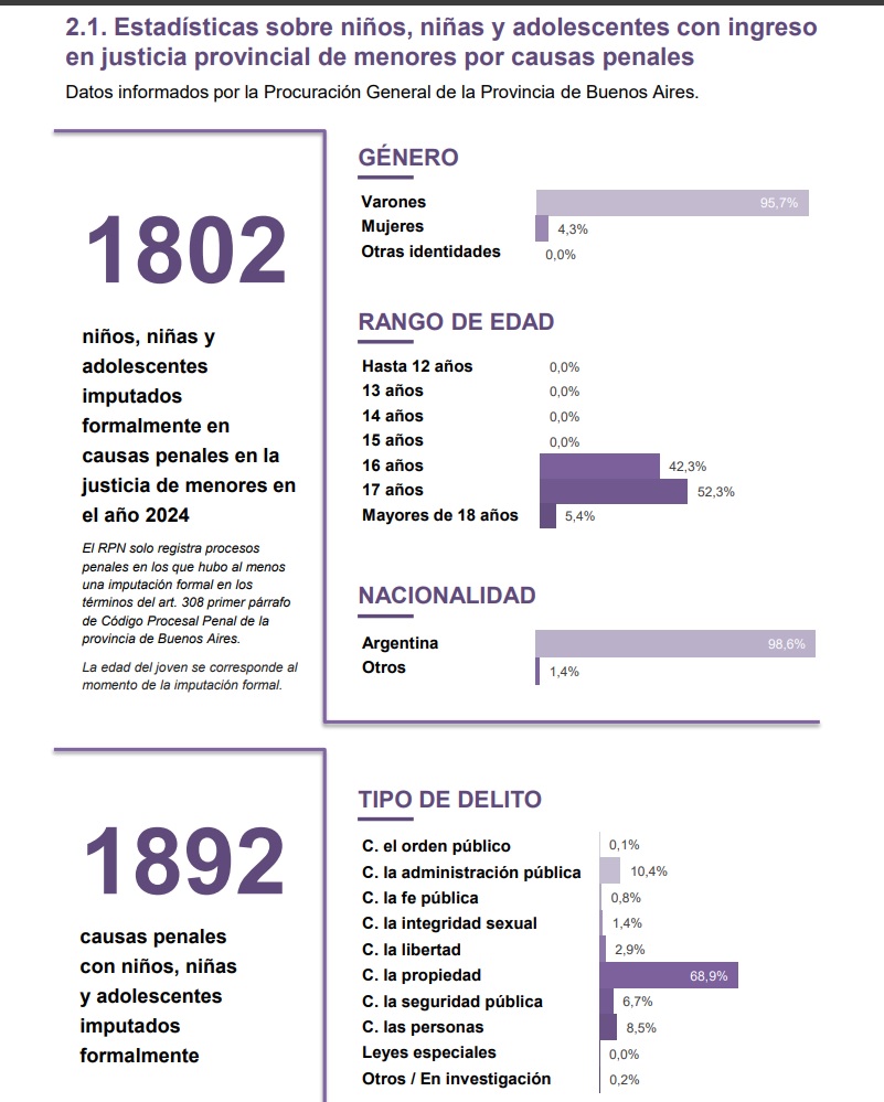 Más allá del impacto y la amplificación en redes sociales, las estadísticas oficiales permiten dimensionar el fenómeno de los niños y adolescentes en conflicto con la ley penal en la Provincia de Buenos Aires, donde rige el Régimen de Responsabilidad Penal Juvenil establecido por la Ley 13.634.