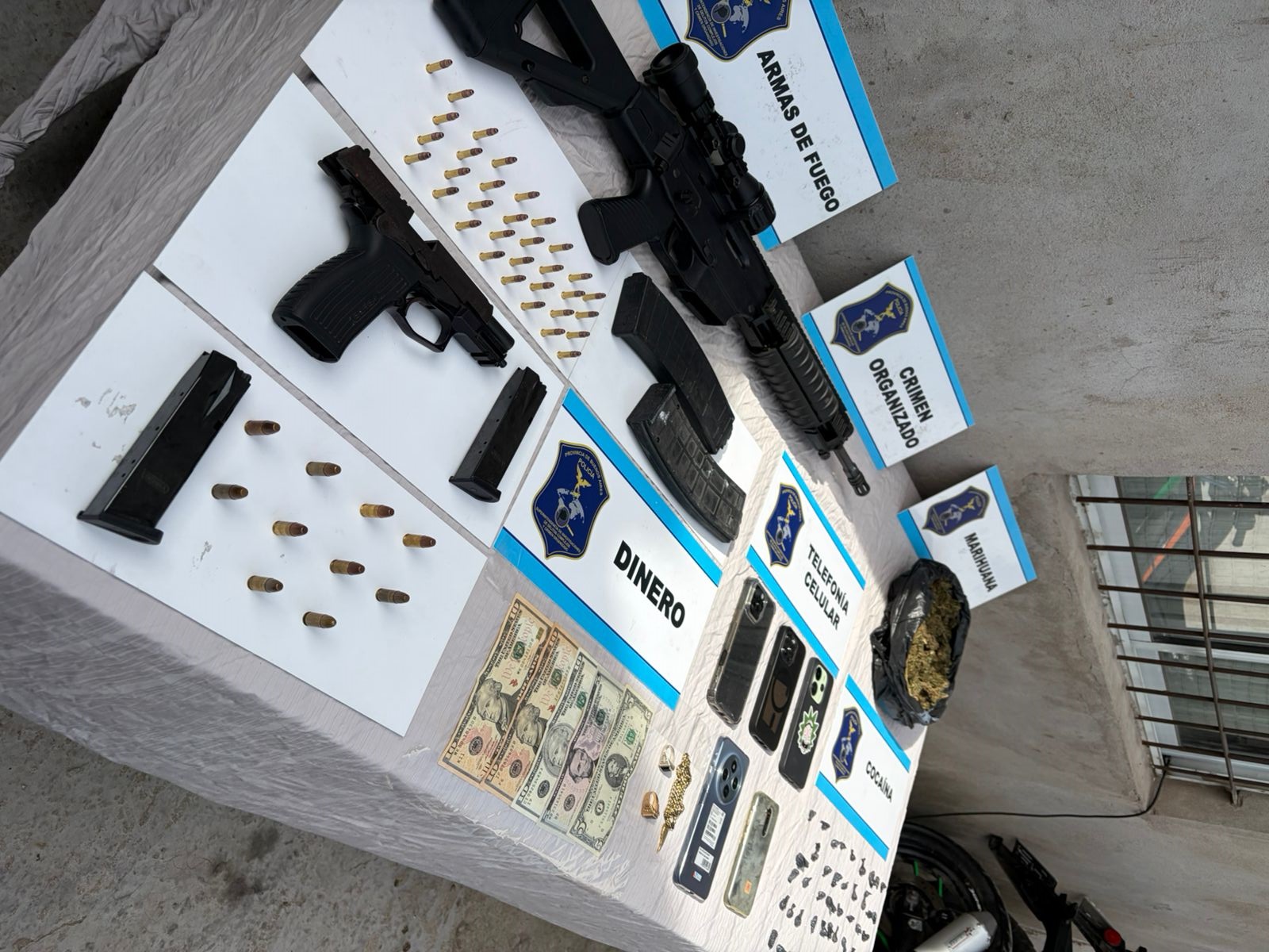 Las pruebas reunidas durante la investigación permitieron avanzar con los allanamientos simultáneos que culminaron con la desarticulación de la organización y el secuestro de drogas, armas y vehículos.